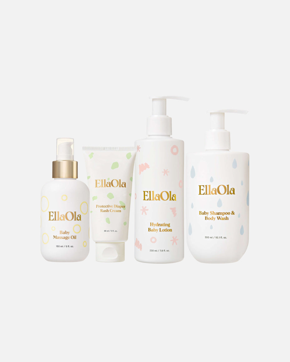 Weight: Superfood Baby Shampoo & Body Wash: 10.1 fl. oz, 100% Organic Baby Massage Oil: 5 fl. oz, Hydrating Baby Lotion: 7.8 fl. oz, Organic Diaper Rash Cream: 3 fl. oz.