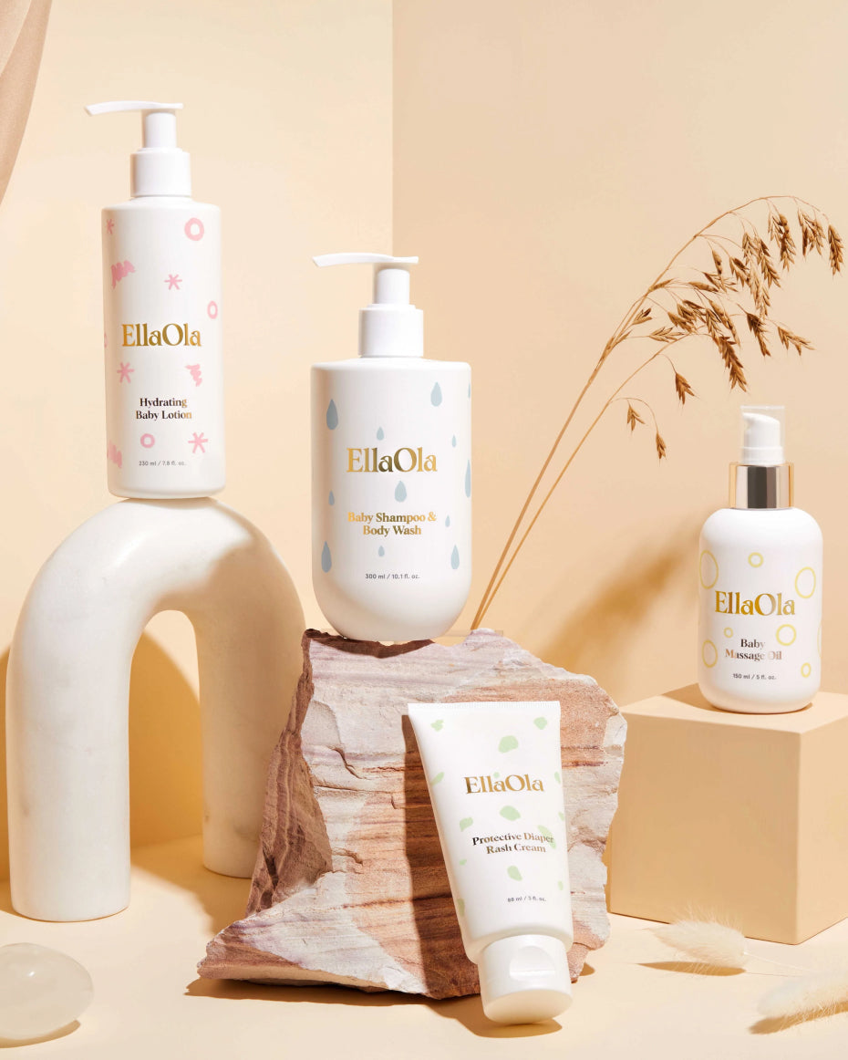 Dimensions: Superfood Baby Shampoo & Body Wash: 10.1 fl. oz, 100% Organic Baby Massage Oil: 5 fl. oz, Hydrating Baby Lotion: 7.8 fl. oz, Organic Diaper Rash Cream: 3 fl. oz.