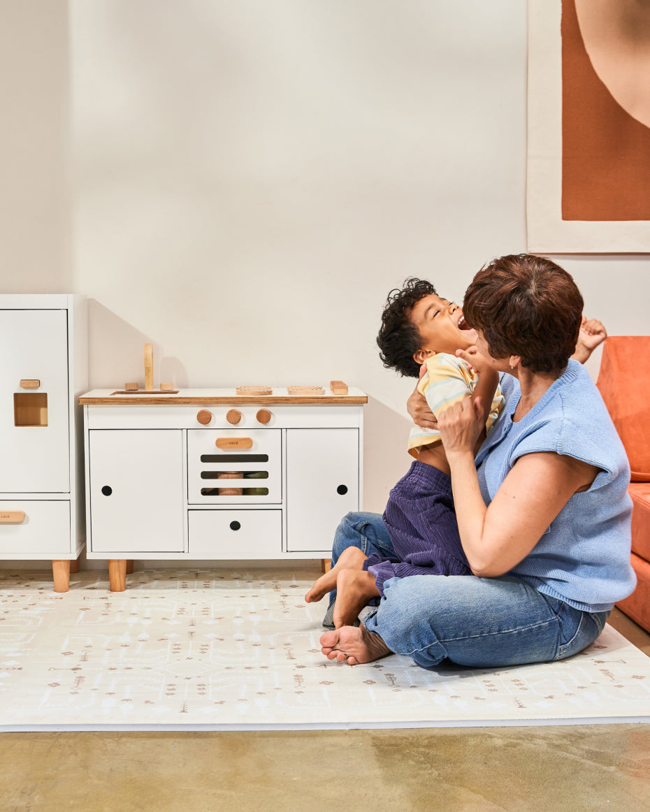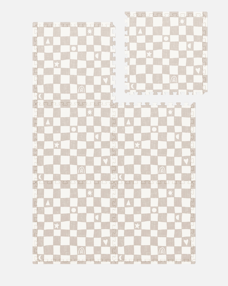 A safe and comfy place to play. This beautiful Play Mat is crafted from cushioned, non-toxic foam. Its expandable design fits any space—elevating the aesthetic instantly.