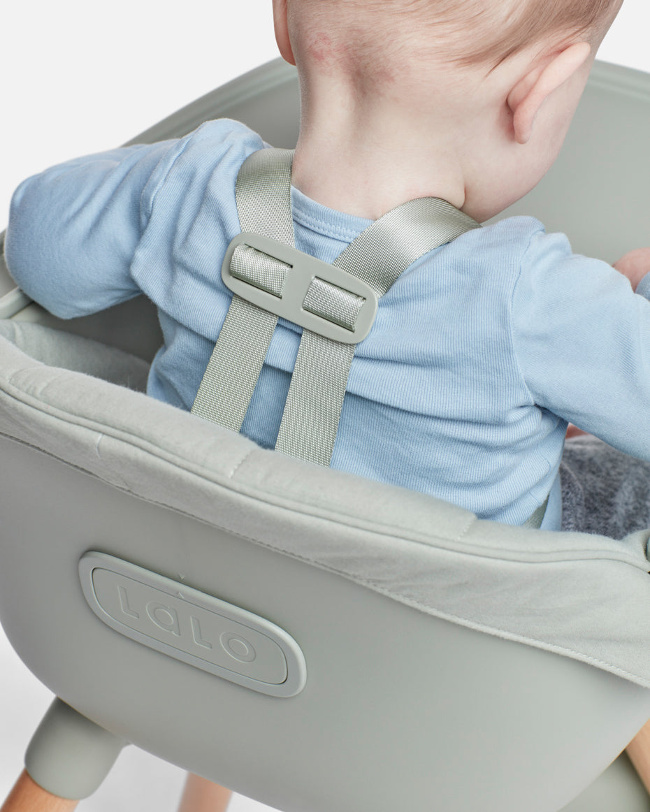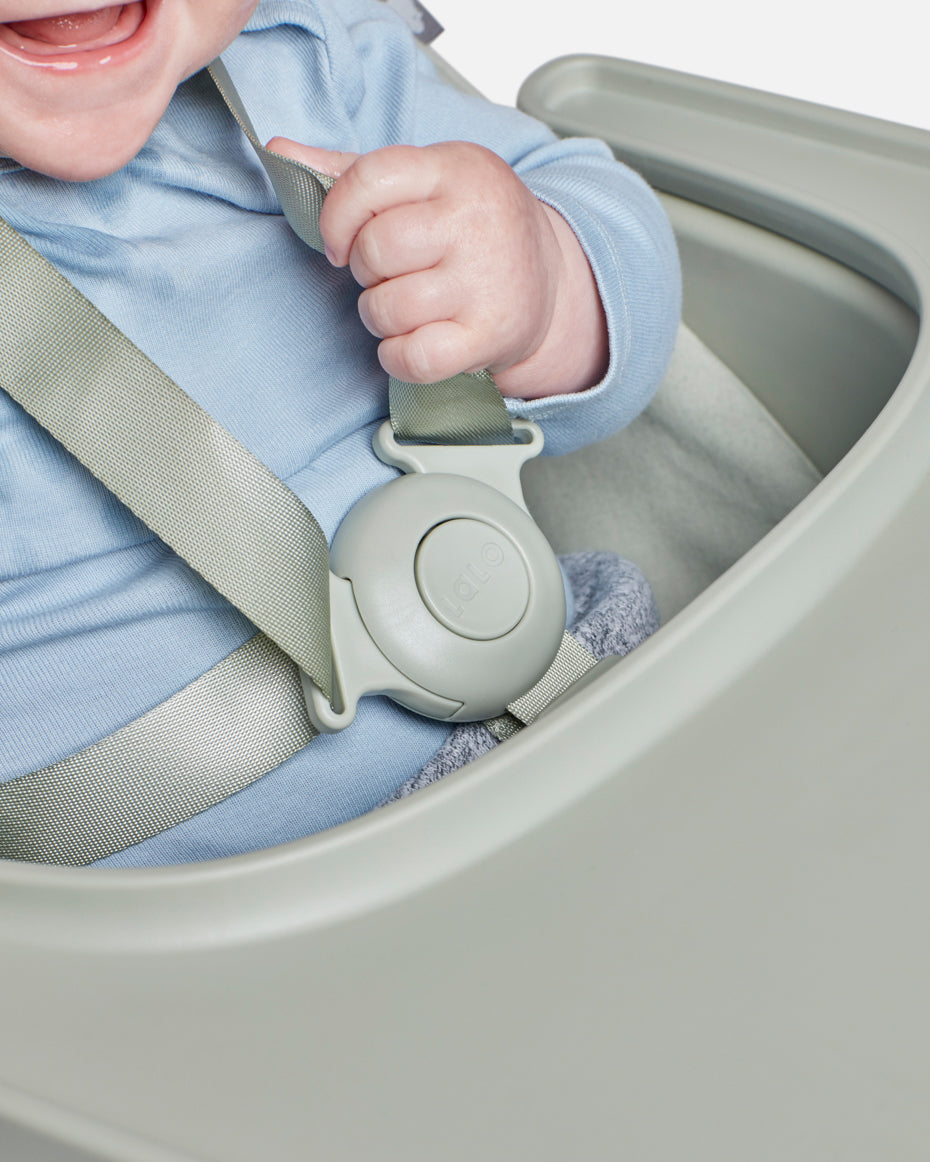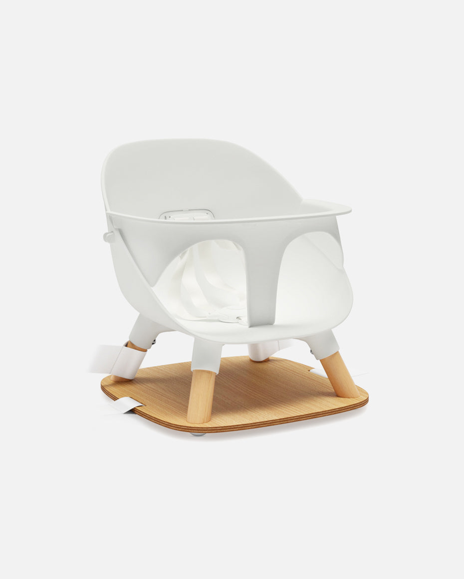 Materials: Legs + Base: Sustainably sourced FSC Certified beech wood; Seat + Belly Bar: Non-toxic plastic; Straps: Nylon